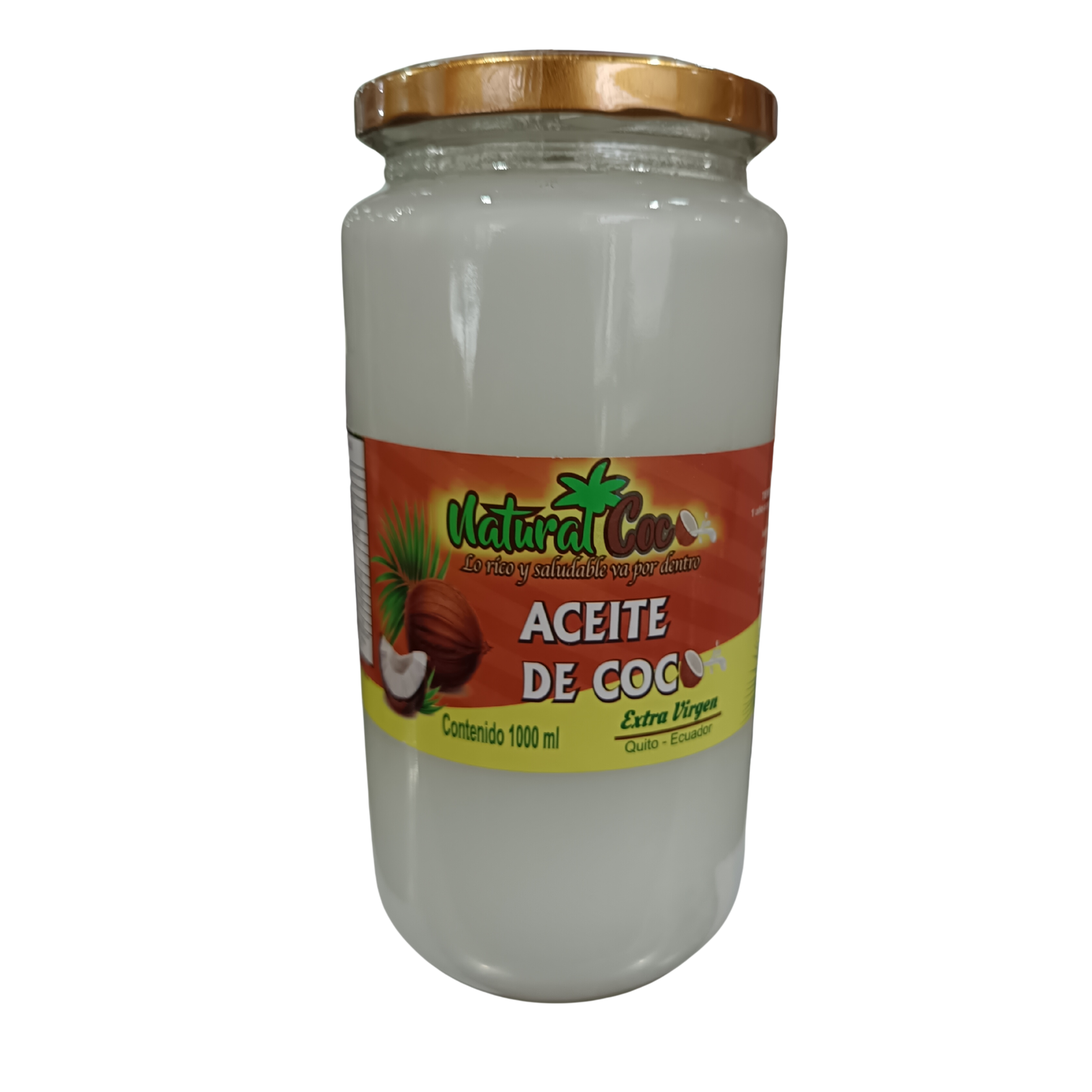 Un aceite de coco extra‑virgen, prensado en frío, presentado en frasco de vidrio de 1 L. Está elaborado con pulpa pura de coco, sin aditivos ni refinado, lo que conserva su aroma y nutrientes naturales