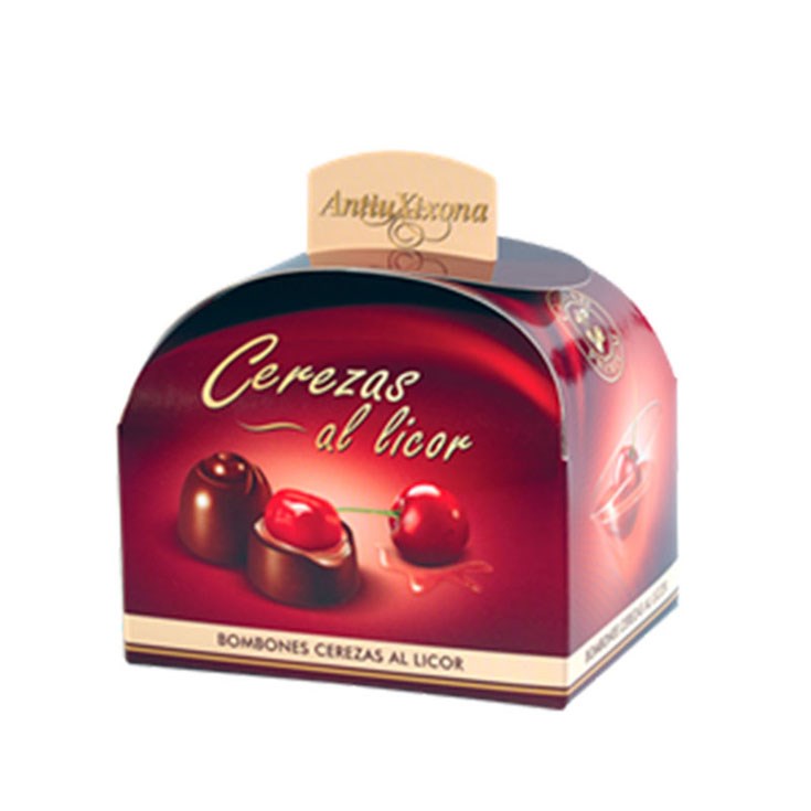 Bombones de cerezas confitadas en licor, cubiertos con chocolate negro