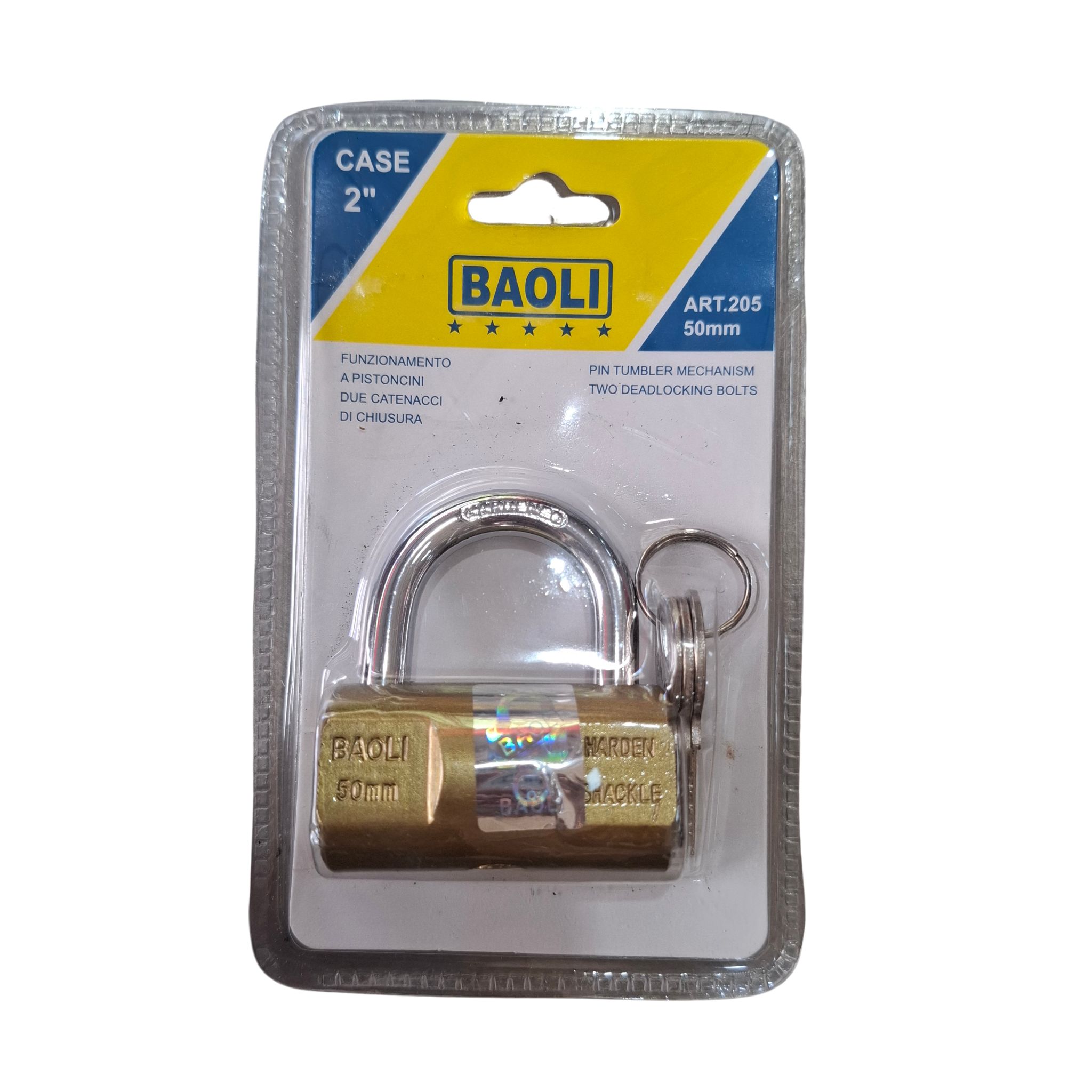 Candado Baoly 50 mm 2P, perfecto para asegurar múltiples objetos.