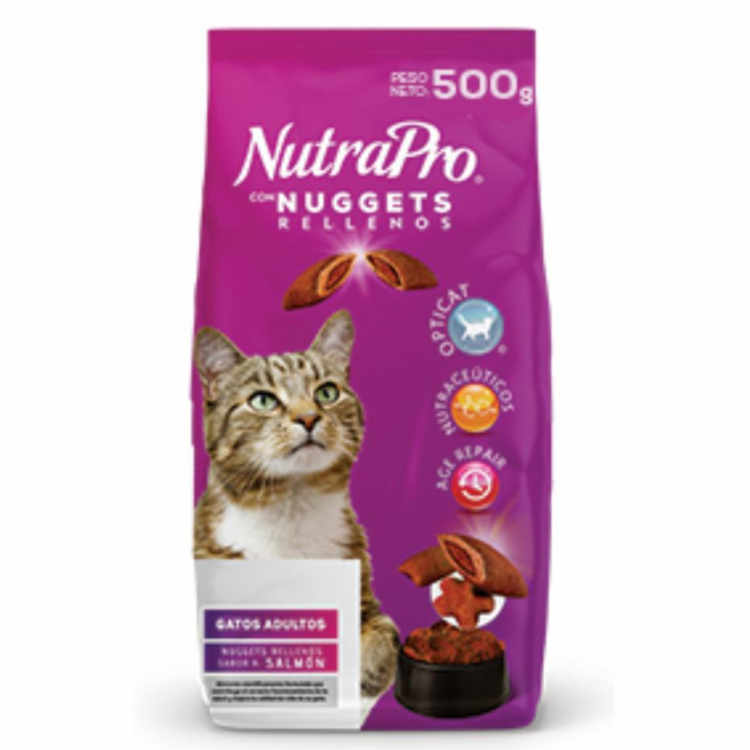 Este alimento para gatos adultos se presenta en forma de nuggets, que son pequeños trozos de comida que son fáciles de comer y digerir. Está formulado para satisfacer las necesidades nutricionales de los gatos adultos y suele ser una opción sabrosa