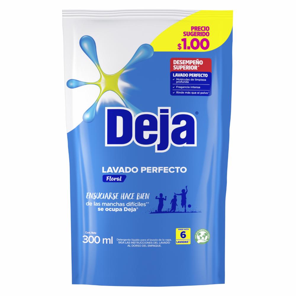 Remueve las manchas más difíciles cuidando tu ropa y sin tener que remojar o restregar, gracias a que Detergente Líquido Deja Floral además de tener un delicioso aroma, se disuelve mejor, penetrando profundamente las fibras de tus prendas.