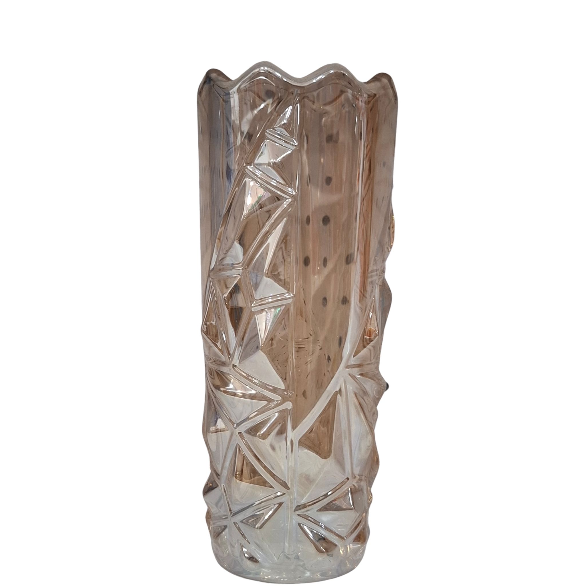 ¡Un toque de sofisticación para tus flores! Este florero de vidrio con detalles en bronce pequeño, con su diseño elegante y refinado, realzará la belleza de tus flores y añadirá un toque de distinción a tu hogar.