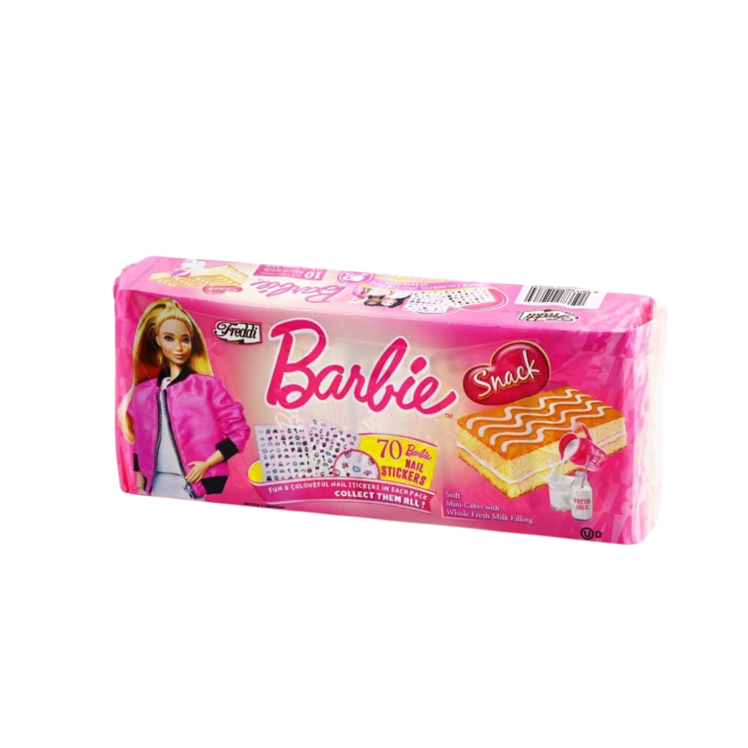 Deliciosas tartitas con la figura de Barbie, rellenas de suave crema. Un dulce perfecto para disfrutar en cualquier momento. Presentación de 250 gramos.