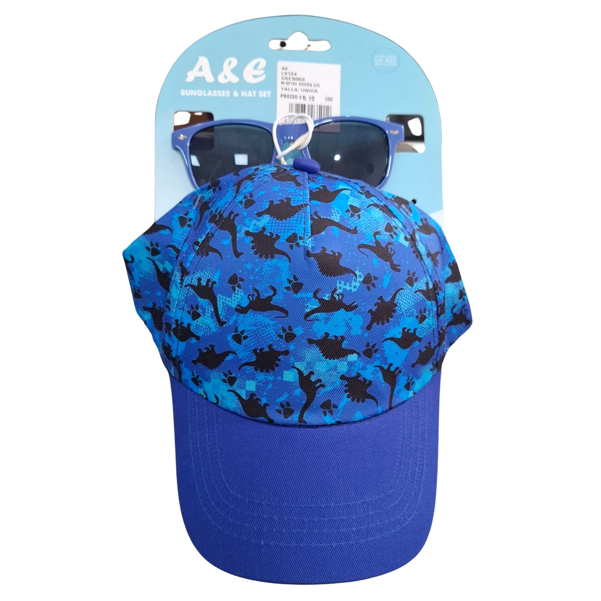 ¡Set vicera con gafas dinosaurio niño azul, elaborado con materiales de alta calidad y protección solar garantizada! Set vicera con gafas dinosaurio niño azul, perfecto para proteger los ojos de los niños del sol con estilo. ¡Calidad y protección para sus aventuras!