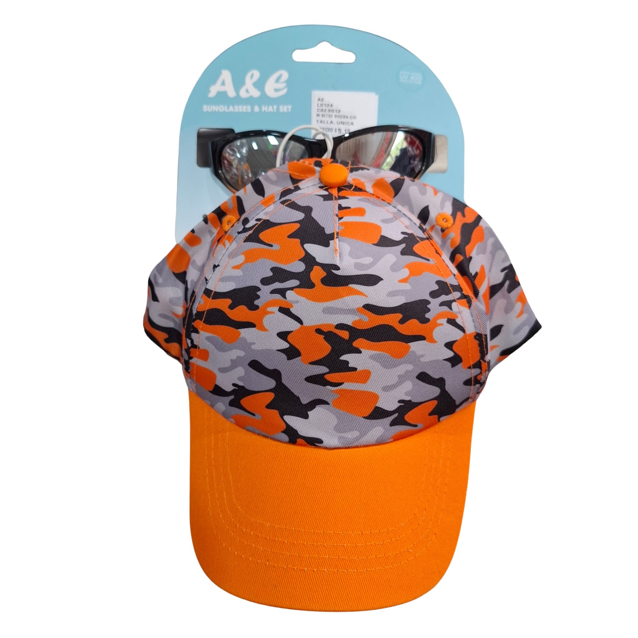 ¡Set vicera con gafas print naranja para niño, estilo moderno y protección solar en un solo conjunto! Ideal para actividades al aire libre y eventos deportivos. ¡Estilo y protección para tus días soleados!»