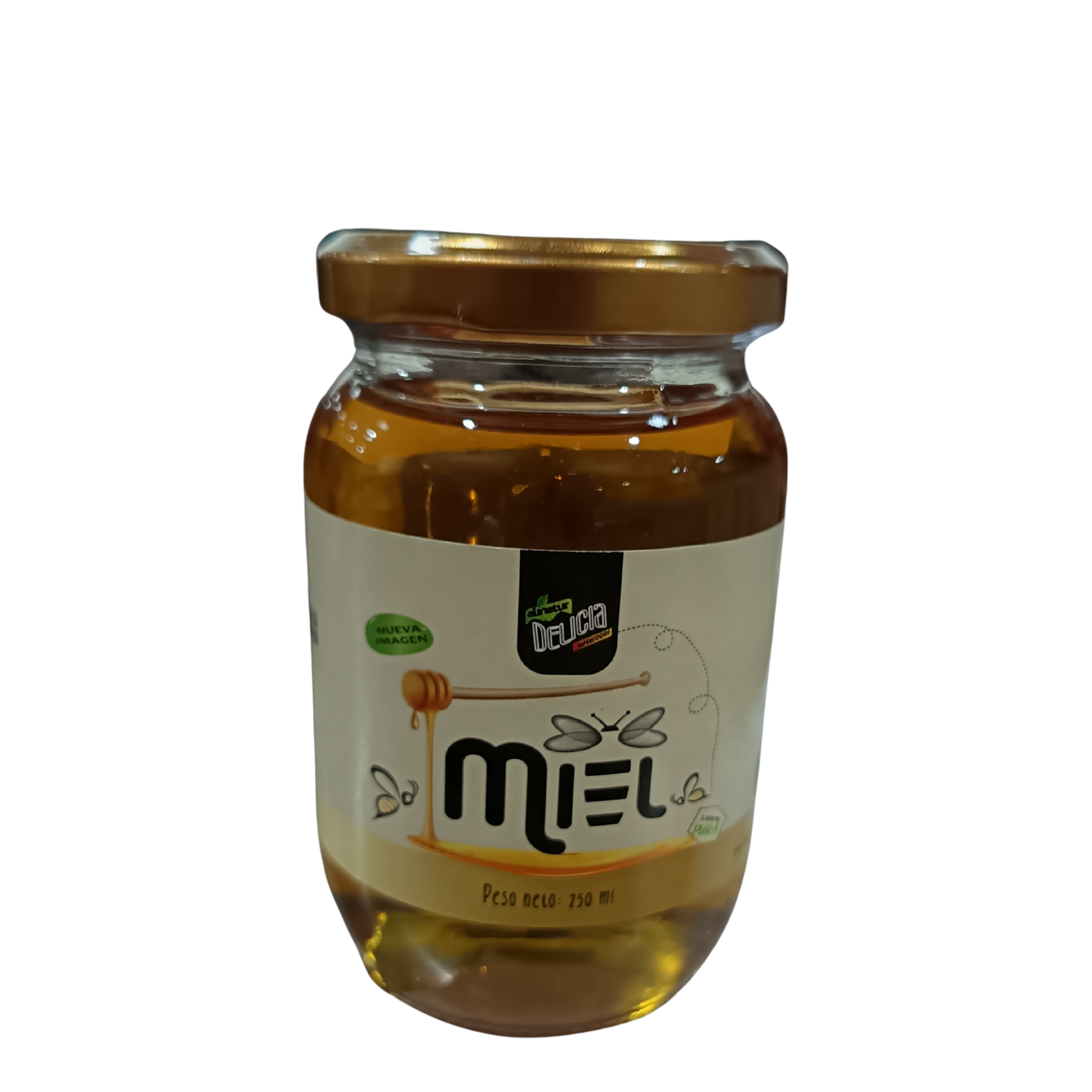 Miel 100 % pura y natural, presentada en frasco de 250 ml. Ideal para endulzar bebidas o postres, rica en antioxidantes, minerales y enzimas naturales. Producto de calidad, listo para consumo directo.