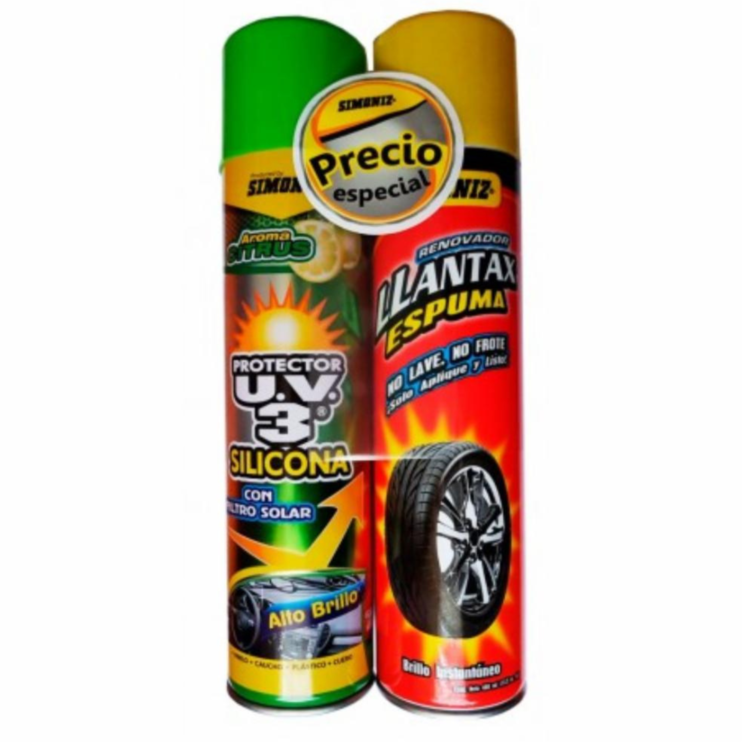 Mantén tu vehículo en perfecto estado con el pack especial de Simoniz, que incluye el protector de silicona UV3 en aerosol y el renovador de llantas en espuma. El protector de silicona mejora la apariencia de tu coche y lo protege contra los dañinos rayos UV, evitando el deterioro y manteniendo su aspecto como nuevo. El renovador de llantas limpia, renueva y brinda un brillo espectacular, dejando las llantas negras y resplandecientes. Este combo es la solución perfecta para el cuidado integral de tu vehículo, asegurando durabilidad y un acabado profesional. Confía en Simoniz para una protección y renovación superior.