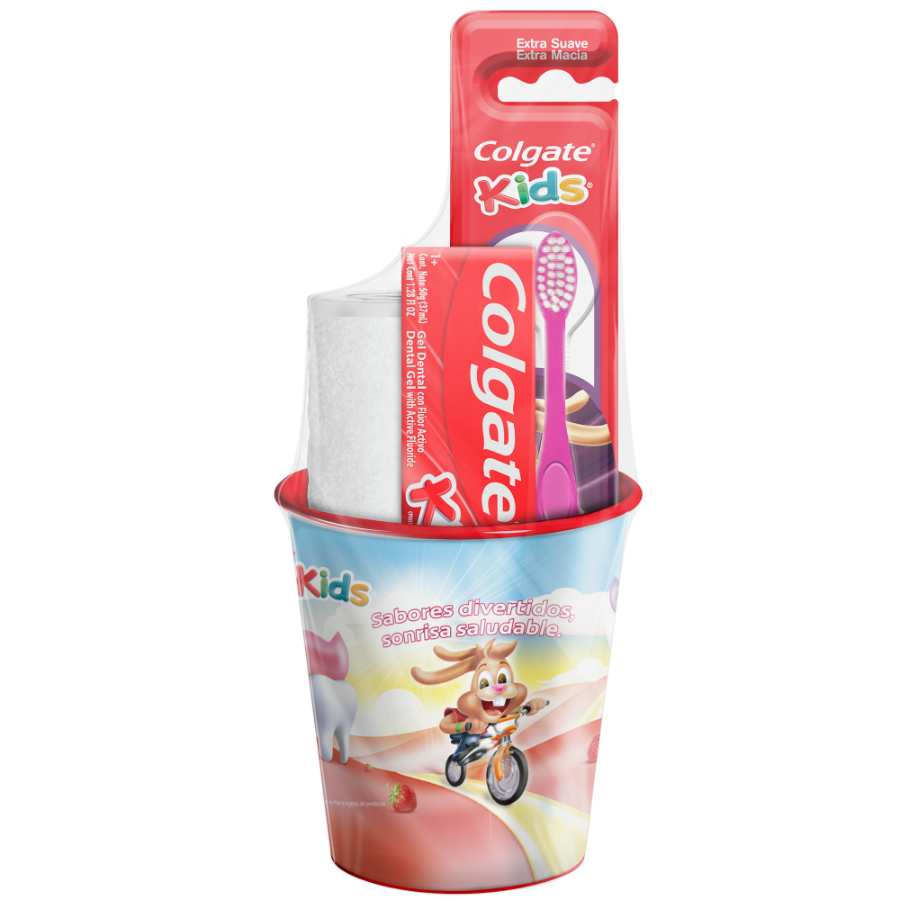 Colgate Kids es el dentífrico ideal y recomendado para niños mayores de 6 años. Contiene una pasta Colgate Kids, un cepillo de dientes y un vaso.