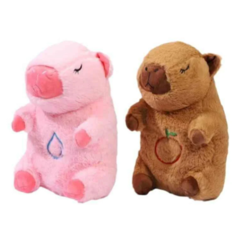Peluche interactivo de capibara que simula la respiración y emite música suave, ideal para brindar calma y compañía a niños y adultos.