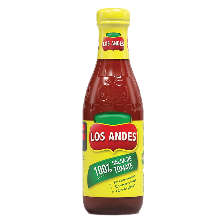 Hecha con una cuidadosa selección de tomates frescos, sal, vinagre y especias, la salsa de tomate Los Andes es 100% natural, no contiene conservantes, ni colorantes artificiales y es libre de gluten.