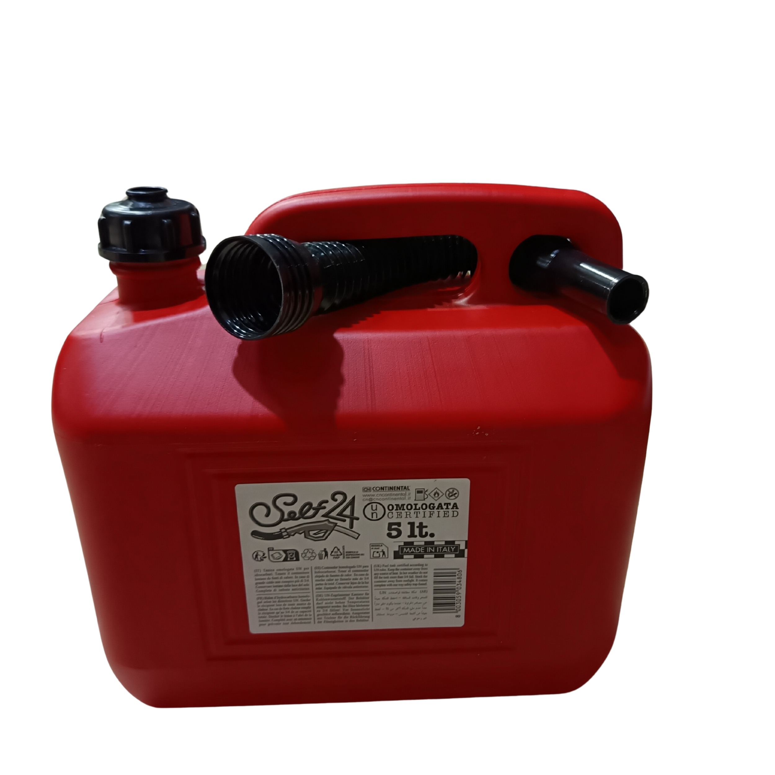 Bidón portátil de 5 litros en plástico resistente. Ideal para transportar gasolina o diésel de forma segura. Con tapa hermética y asa para fácil manejo. Perfecto para autos, motos o uso doméstico.